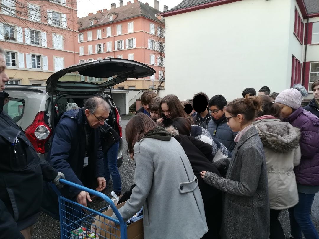 Les élèves ont finalement remis les dons du collège aux bénévoles le mercredi 10 janvier. Le président des Resto du coeur a lui même fait le déplacement pour les remercier.